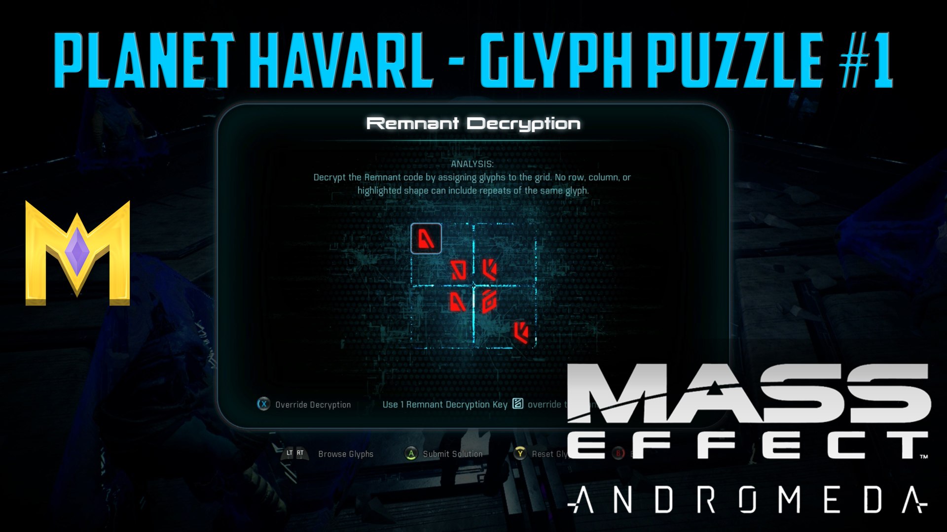 Remnant decryption is a kind of puzzle in mass effect andromeda. At mass effect andromeda vide game you will find remnant puzzles. How to unlock the cryptographer achievement in mass effect: Mass effect andromeda remnant decryption puzzle rules · a glyph must be inside every grid space · no row can include repeats of the same glyph · no . It requires you to play a game of alien sudoku, where a wrong guess spawns . They are similar to the famous sudoku game. The goal of andromeda sudoku is to fill a grid . The remnant puzzles tie heavily into what is ostensibly mass effect: Your goal is to assign the available glyphs to the grid. Complete 20 remnant puzzles in a single playthrough. It's all part of mass effect: How do you work them out? Here are some helpful tips and tricks to get you .